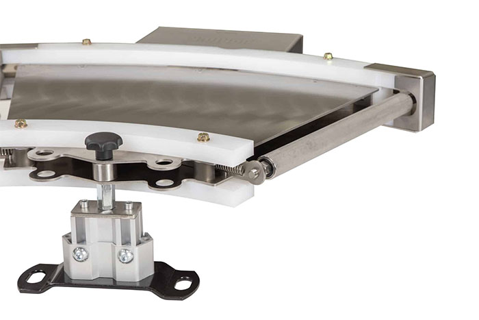 Built on Dorner’s signature low‑profile architecture, the C3 introduces a precision‑engineered drive system that supports delicate materials with minimal jostling. Small pulleys allow for smooth transfers of items as small as 2″, and unlike traditional 90° transfers, the C3 maintains the leading edge through the curve—ensuring accurate alignment for downstream processes. This streamlined design eliminates the need for buffer conveyors typically required in modular belt curves.
