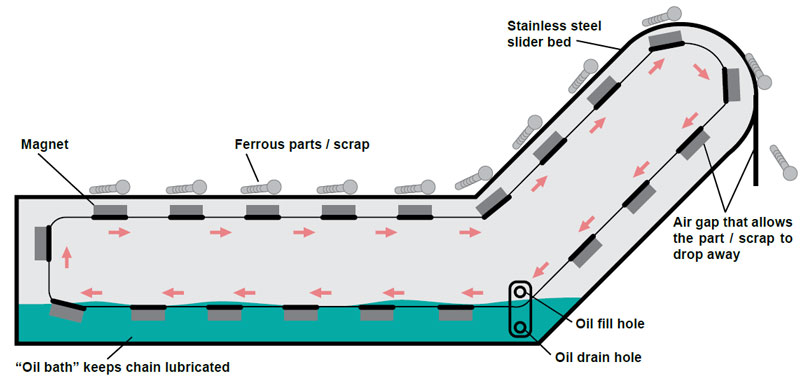 Chain-driven magnet assembly ensures dependable, 24/7 performance with minimal service needs.