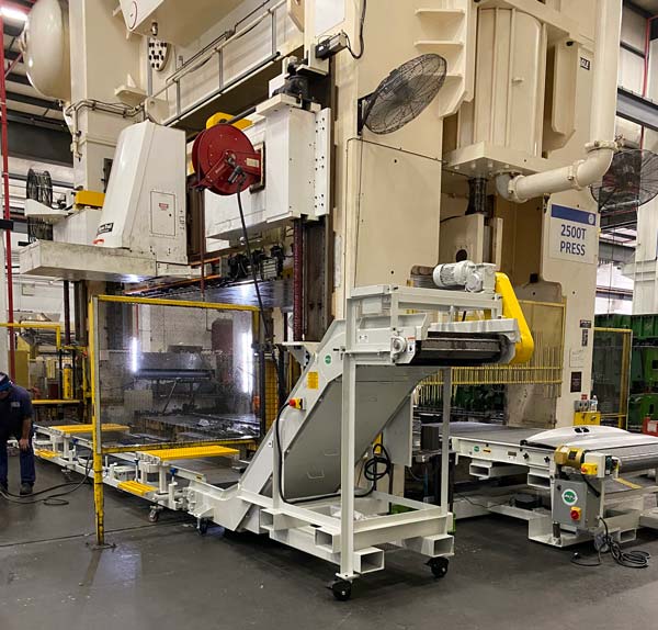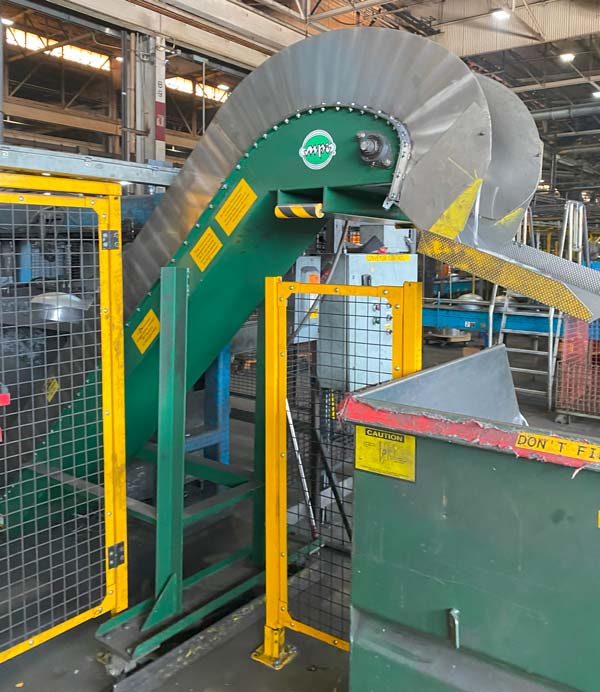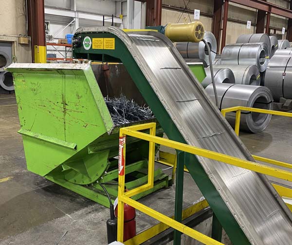 Handles materials that typically damage belts, including hot metal chips or jagged stampings.