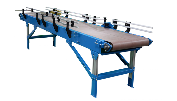 The New London Engineering Model 321's heavy duty frame and pulleys are grooved/notched to provide a track for the rubber guide that is vulcanized to the underside of the belt. This keeps the belt centered for side loading, long run, and short but wide heavy-duty applications.