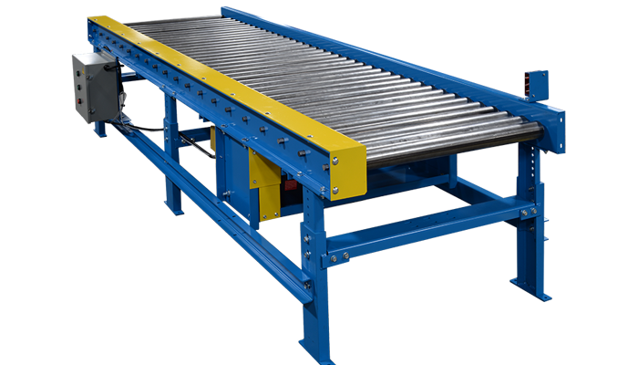 Industrial, heavy-duty conveyor with a variety of drive and height configurations designed to handle large item loads up to 2,000 pounds per lineal foot of conveyor.