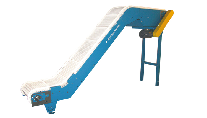 Designed to carry small, unboxed, loose products like plastic parts, nuts, bolts, ammunition, and stampings, these units typically use flights (cleats) and sideguards to catch, carry and contain unwrapped, unpackaged items.
