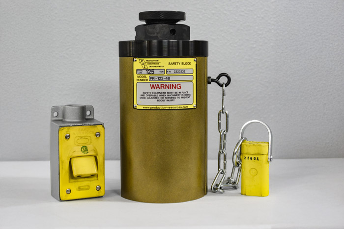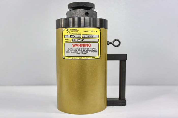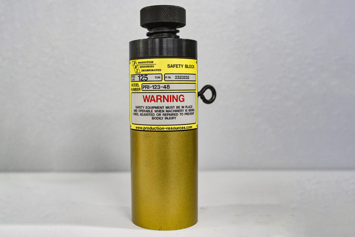 Production Resources Inc.'s die safety blocks are placed between the die punch and holder or ram and bolster with the machine stroke up.